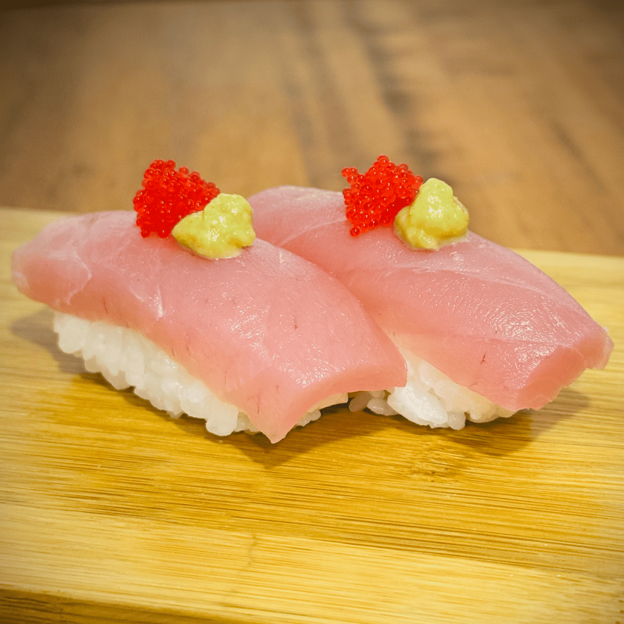 2 MAGURO NIGIRI (Atum, ovas de tobiko vermelhas e wasabi)