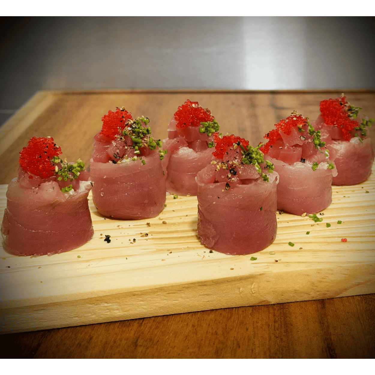 4 MAGURO JOE (Atum com azeite trufado e ovas de tobiko vermelhas)
